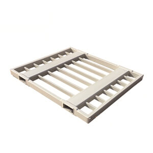 CB型圆角双面钢托盘 产品用途:主要为大批量软包装物品存储和周转设计(袋装)。采用圆角工艺,完善传统式四个尖角焊接,主要防止麻袋在放置时不容易刮破。 进一步了解>